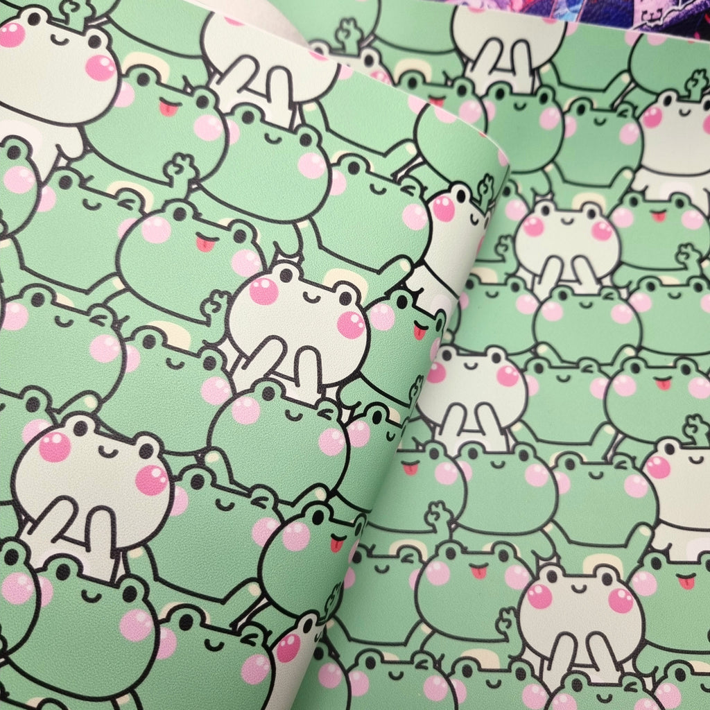 Kawaii frogs Faux leather / vinyl fabric.