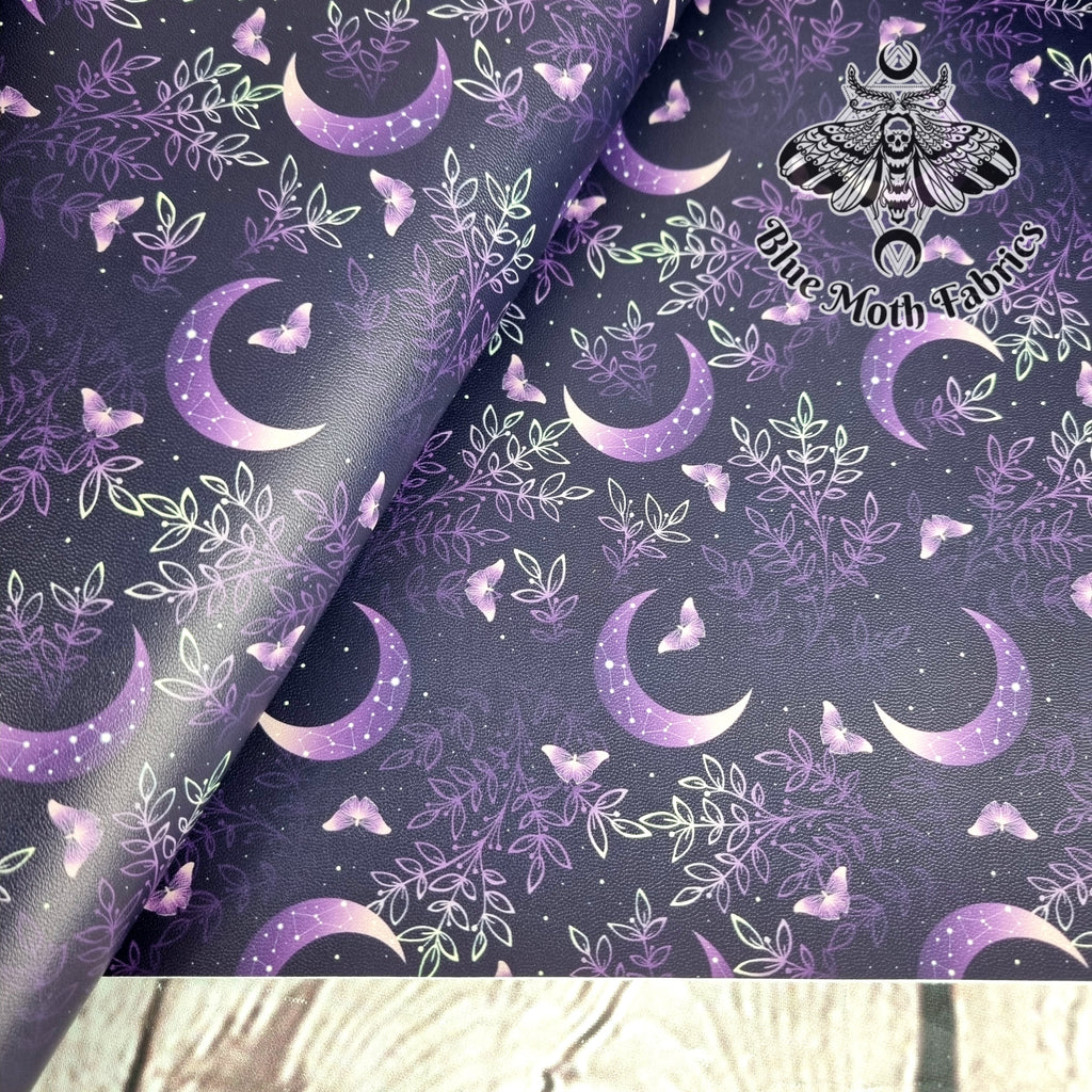 Purple Moons Faux leather / vinyl fabric. 39x66cm roll
