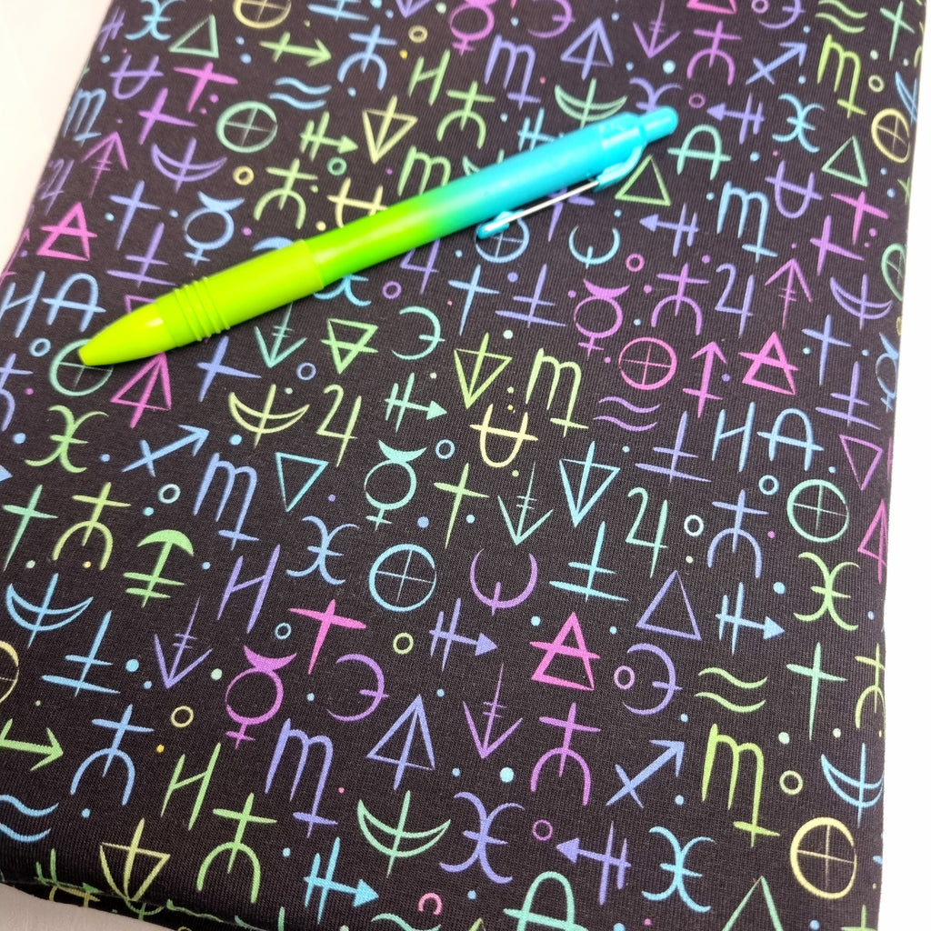 Signs cotton jersey fabric. Great for t-shirts, leggings, dresses, underwear and many more beautiful makes.