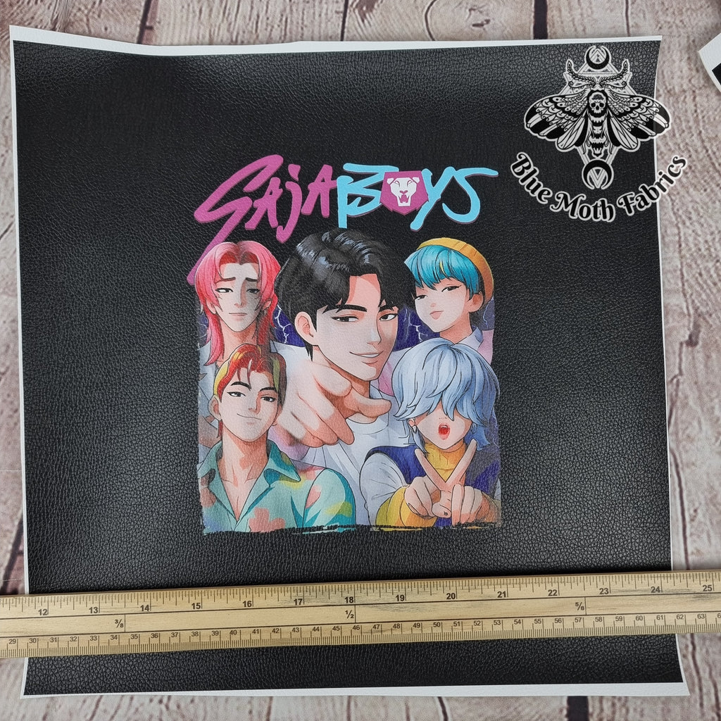 Saja Boys K pop demon hunters textured Faux leather / vinyl fabric. 33x33cm PANEL