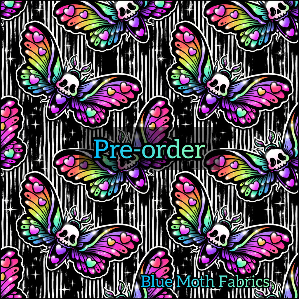 PRE-ORDER. Neon love death Moth fabric. By METER