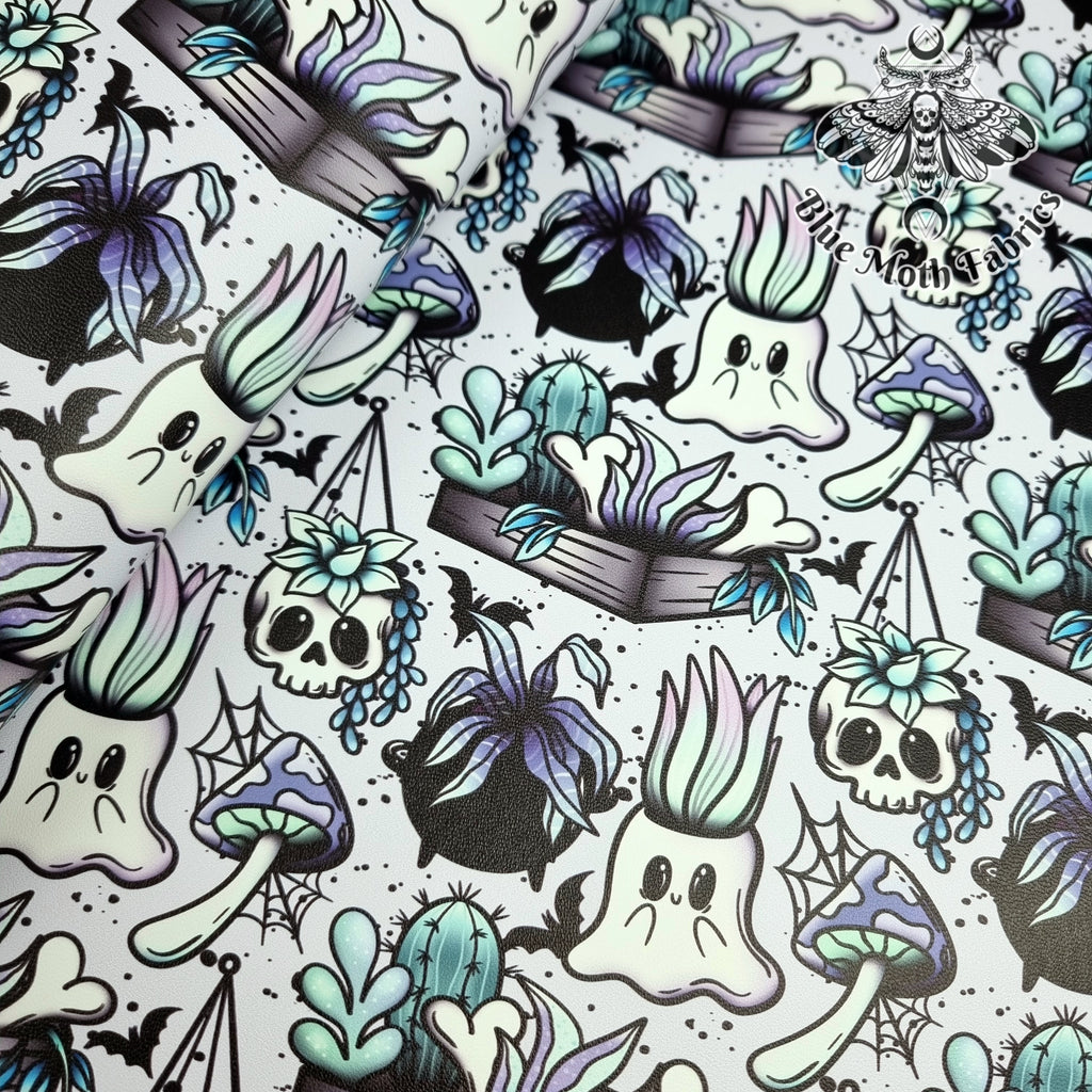 Lilac Spooky Plants faux leather / vinyl fabric. 39x66cm roll