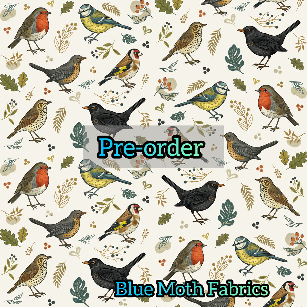 PRE-ORDER. British Birds faux leather / vinyl fabric. 39x130cm