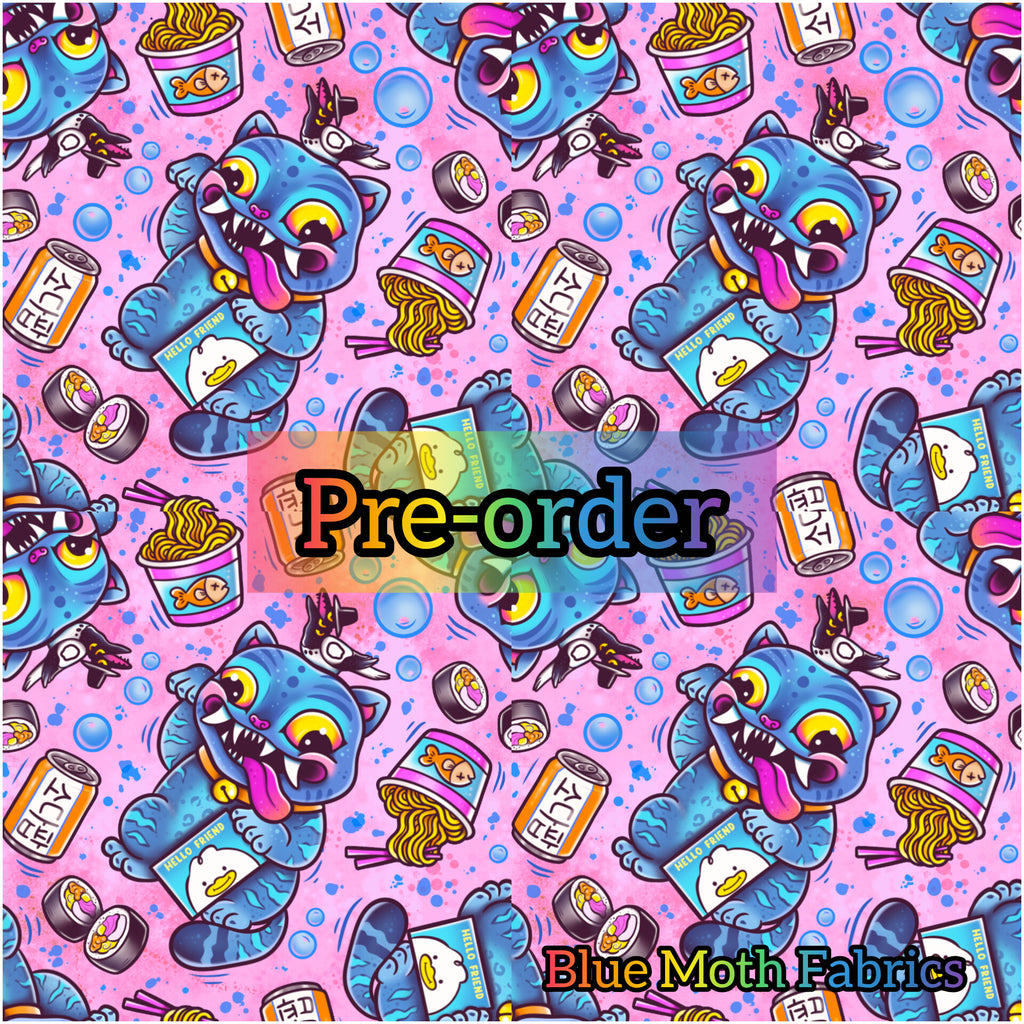 PRE-ORDER. Derpy Tiger pink faux leather / vinyl fabric. 39x130cm